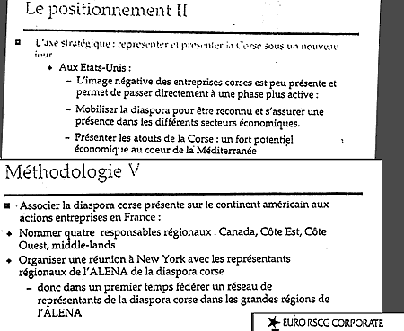 Dans ce projet, à aucun moment des précisions ne sont données sur l'origine des investisseurs. Séguéla tente bien de différencier des "Maître du monde" d'autres investisseurs plus fréquentables, mais lesquels ? Dans le document d'EURORSCG CORPORATE on met l'accent sur des acteurs économiques provenants des Etats Unis :