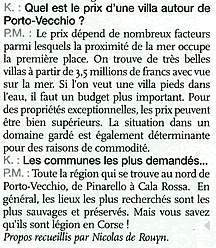 1 semaine de vacance au mois d'aout au domaine de murtoli : 208 000,00 Francs.